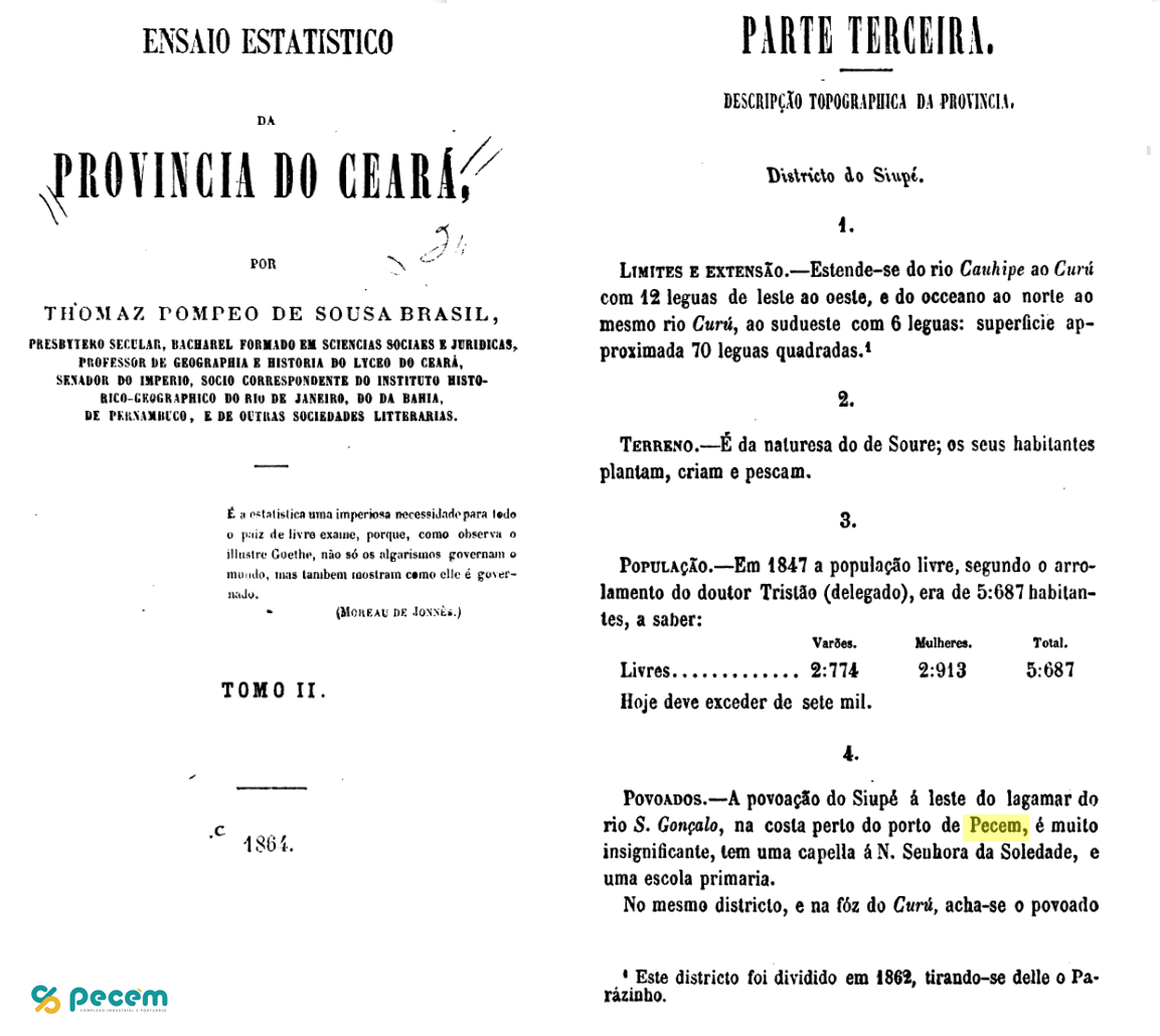Publicação de Thomas Pompeu com a descrição topográfica da região do Siupé, citando o Porto do Pecém – Fonte: Revista do Instituto do Ceará.